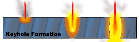 At power densities high enough to start the surface boiling, a three step process forms a penetration key hole. At first the pressure evaporating metal gasses push on the surface forming a depression. The depression acts as an absorbing cavity; further improving absorption, increasing pressure of the evaporating gas, and the depth and absorption of the cavity.